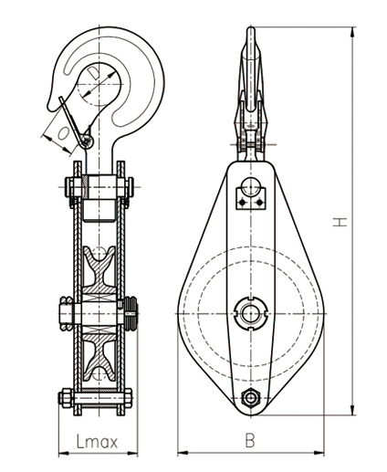 1、吊钩特点:优质合金钢模锻而成,3倍安全系数。 2、滑轮:铸铁滑轮、铸钢滑轮、热轧滑轮。 3、滑轮套芯:复合耐磨铜套、纯铜套、滚珠轴承、滚针轴承。 4、其他吨位可以定做。